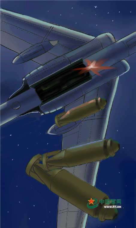 战鹰突防至目标上空,打开弹舱,向敌方阵地泼洒“炸弹雨”,摧枯拉朽,草木不留。