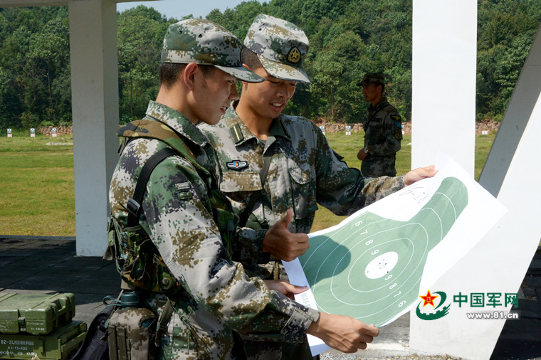 新兵高晓宽在第一次实弹射击中就打出了50环的好成绩,班长不禁对他竖起了大拇指