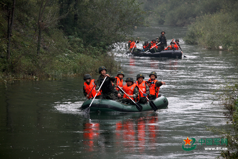 凌晨3时30分开始,每小组配备1艘橡皮艇,在陌生地域河道战术漂流、河流操舟、奔袭搜剿36公里(扛舟行军约5公里),而后徒步涉水奔袭10公里。全程贯穿按图行进、简易通信、野战生存、野外宿营等课目。此课目用时18小时20分钟,9艘橡皮艇,5艘严重撞裂(途中抢修7次---补船),3艘橡皮艇翻舟,5人因翻舟受伤。