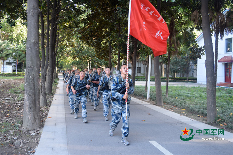 看,这是学员们在营区内进行模拟拉练,嘹亮的歌声和整齐的步伐穿梭在每一个角落,为这个欢快的节日增添了一抹色彩。