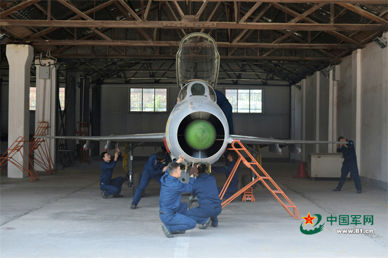 瞧,机务大队的官兵们正在对飞机进行日常的维护和保养,这放假了,咱们的战鹰也得精心呵护啊!