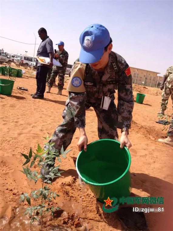 思乡情:“茫茫大漠孤日悬,渺渺前路黄沙漫。莫叹妇孺流亡苦,人间何处觅家园。”刚刚来到营区的时候,何教授这样形容法希尔的生活。黄沙漫天,沙暴肆虐……但是这并没有影响他对生活的热情:司令部统一安装的海尔空调、端午节的小米粽子、超级营地饭店店员骑的凤凰牌二八自行车……在非洲能够见到的“中国元素”都被何教授一一发现、记录,不仅如此,他还在营区内种小树、栽西瓜……渐渐地,法希尔在维和官兵的建设下变得越来越有“人气”了。临走时,教授把自己的微信头像换成了营区里种的的蓖麻树,用“十年树木,百年树人”来纪念自己这一年难忘的“蓝色”生活。