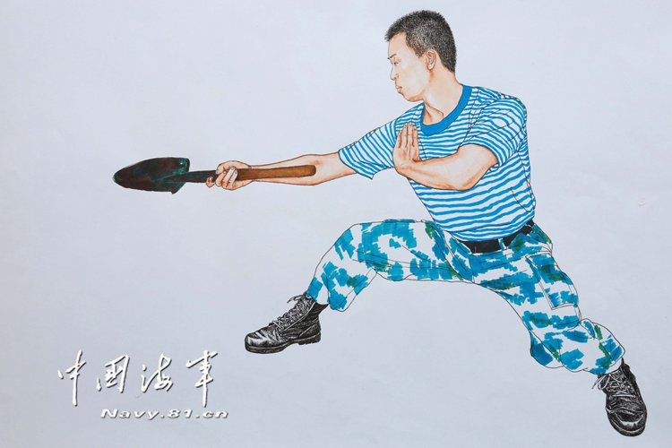 陆战队女兵手绘工兵锹格斗术秘籍 快快练起来