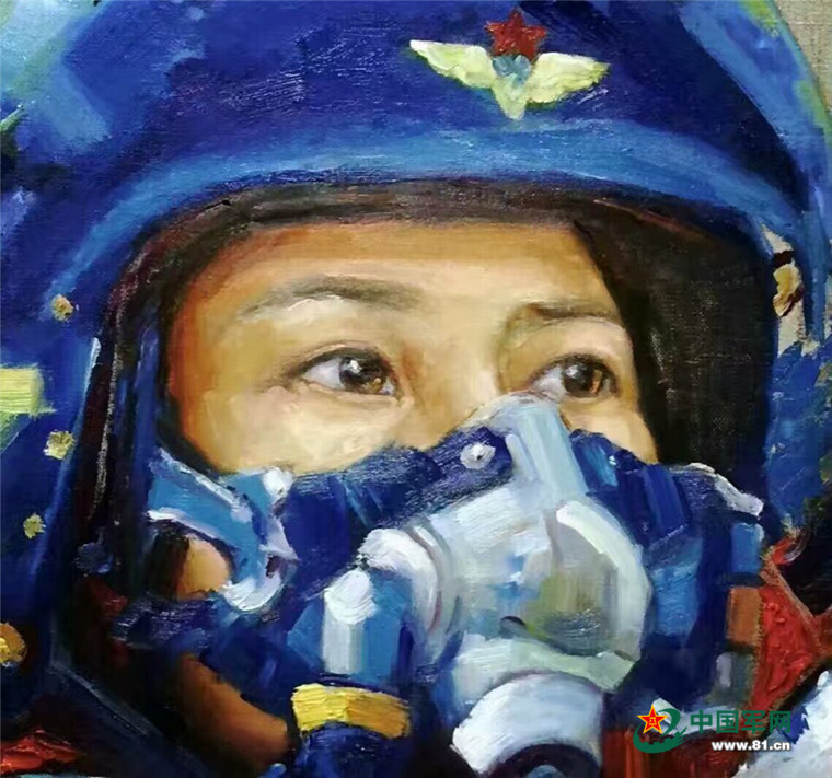 此画为成都画院王民平院长所作。他称:“我最喜欢余旭眉宇间散发出来的女军人的坚强与果敢,在技法处理上,我没有刻意画完整,我把周边虚化,着重刻画一个女飞行员的面部。我画的不仅仅是一个具体的战机女飞行员,而是军人坚强的性格和他们对祖国、对人民的情感!”
