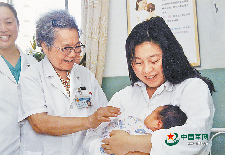 2000年,叶惠方查房时看望新生儿。(资料照片)