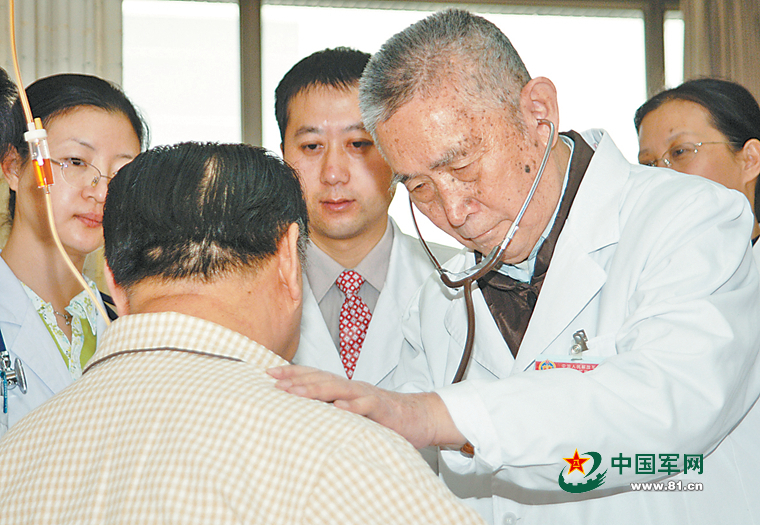 牟善初带着年轻医生查房。(资料照片)