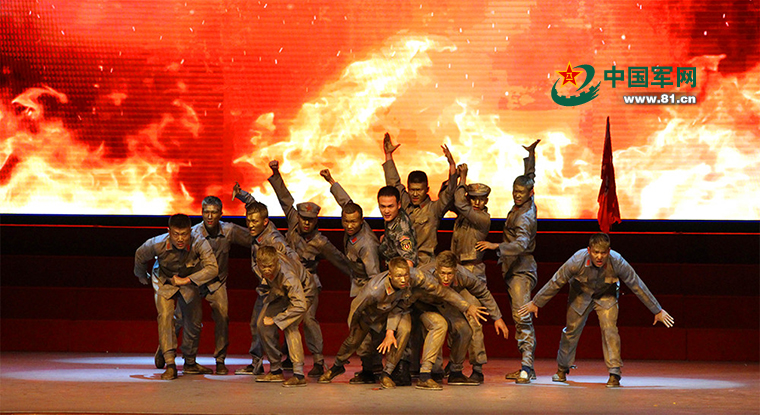 这支舞蹈讲述了一个当代军人寻找长征中的故事,他在烈士雕塑前感受前辈们的壮举,突然“穿越”到80多年前与先辈们并肩作战。