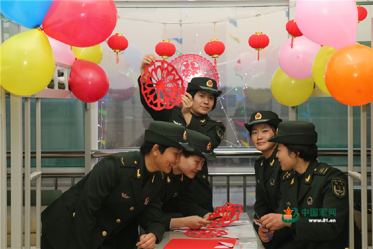 女兵们剪窗花也别有一番风味。
