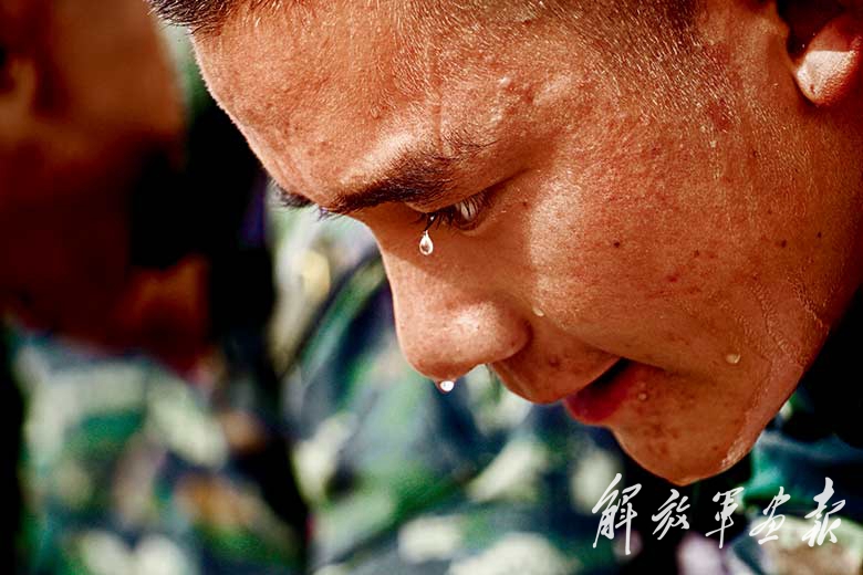 《砥砺血性》这幅照片的作者利用大光圈、小景深拍摄人物面部特写,既突出了主体,又给人以强烈的视觉冲击。同时,采用对角线构图,使画面充满了视觉张力,既给画面人物眼前留了“余地”,也给读者提供了信息采集的空间。作者抓拍技巧娴熟,功夫到位,既刻画了人物面部淡定神态,又巧用滴滴汗珠表现了战士在训练中那刻苦顽强的精神。当然,作者如能略变角度或将作品背景再加虚化,视觉效果可能会更加突出。