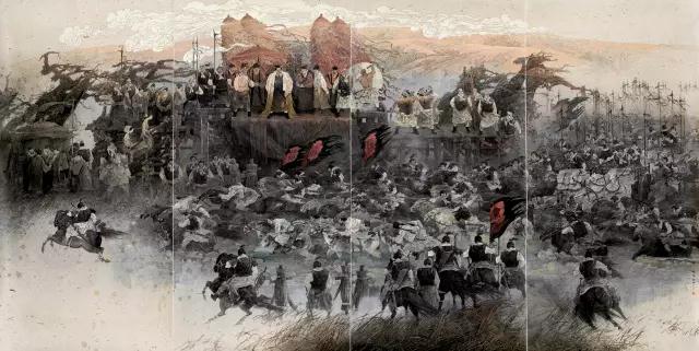 崔晓柏《胡服骑射——武灵阅兵》中国画