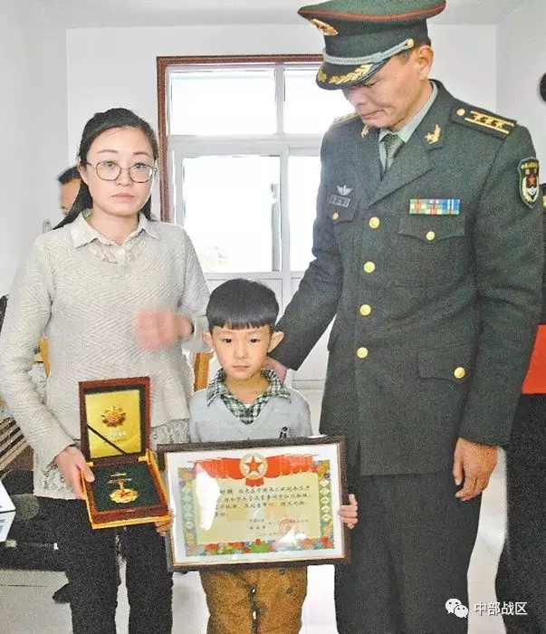 资料图:2017年1月10日,该旅政治部主任鲁成军代表部队向杨树朋烈士的家人颁发一等功奖章。孙菲菲 摄