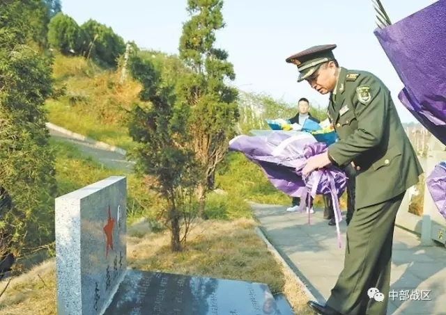 资料图:2017年1月13日,该旅副旅长、我第二批赴南苏丹维和步兵营营长王玉安一行,来到四川省蒲江县的李磊烈士家中,将部队授予李磊的一等功奖章,送到了烈士母亲杨彬的手中,并向李磊烈士墓献花。付晓飞 摄