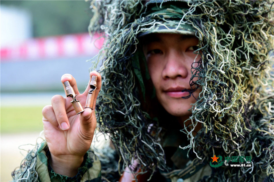 狙击手马瑞丰在展示他的战果。廖键 摄影