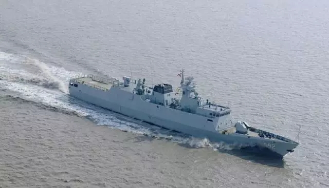 泸州舰,舷号592,是我国自行研制设计生产的新型导弹护卫舰,长89米,宽11.14米,排水量1300吨,具有操纵性能好、续航力自给力大、隐身性能好、攻防性能强、自动化程序高等特点。具有较强的反潜、防空、对海作战能力。
