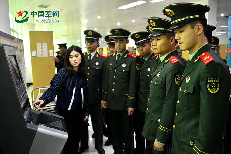 官兵正在了解图书自助借还系统。潘政 摄。