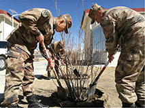 对绿色的向往是一种美好情愫,也是一种执著追求。为了在不长树的高原种活树,那曲军分区官兵挖深坑、筛羊粪、铺地膜、裹被子……想尽一切办法,半个多世纪以来,那份与恶劣自然环境抗争的坚韧与不屈一直在延续——