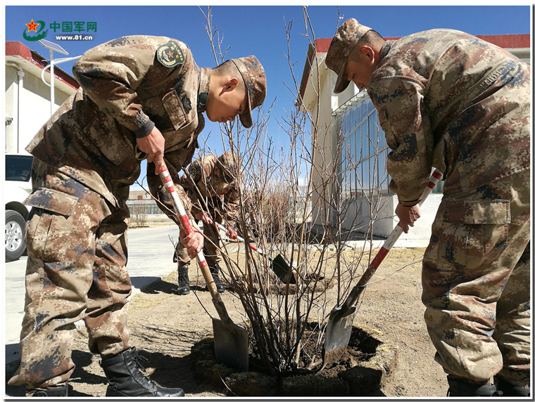 4月18日,藏北高原渐渐启暖升温。怀揣希望和梦想,在这个早春,那曲军分区官兵种下了300余株高原红柳。