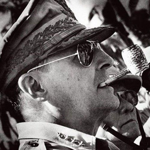 最初,这种新发明的墨镜仅仅是作为飞行员的护目眼镜。后来,人们发现它不仅能够吸收日光,而且发散的热能也很少,对视力也有保护作用,墨镜便逐渐在美军推广开来。英俊的外貌、利落的军服以及帅气的墨镜,让美国大兵成为无数少女心中的白马王子。二战期间,美国的五星上将麦克•阿瑟将军更是戴着墨镜出征,他叼着烟斗、佩戴墨镜的形象深入人心。人们爱屋及乌,对英雄的热爱也蔓延到了将军佩戴的墨镜。雷朋成为墨镜的著名品牌,受到了大众的追捧。