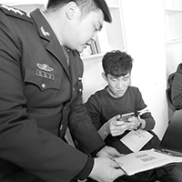 黑龙江省海林市人武部利用大数据平台筛选出高学历、高素质适龄青年,通过数据交互系统定期为适龄青年推送征兵宣传信息。图为适龄青年正在通过扫手机二维码登录大数据平台。赵景旭 摄