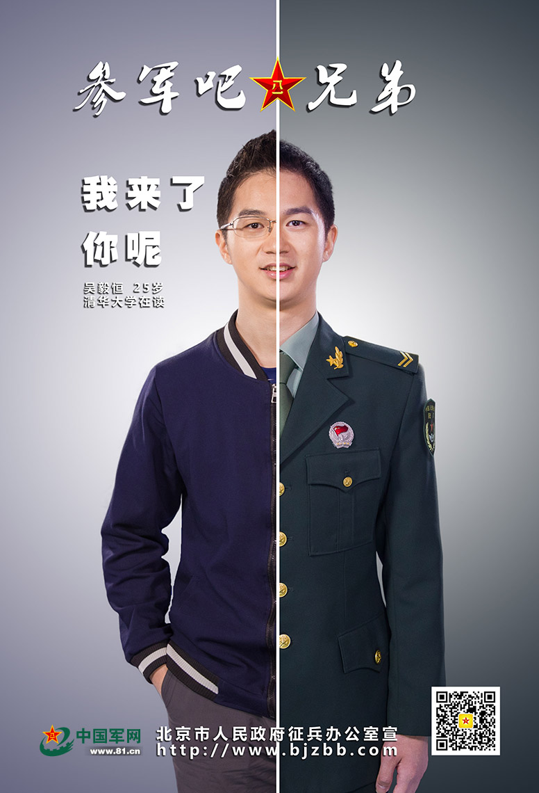 北京市人民政府征兵办公室发布征兵海报:参军吧,兄弟!