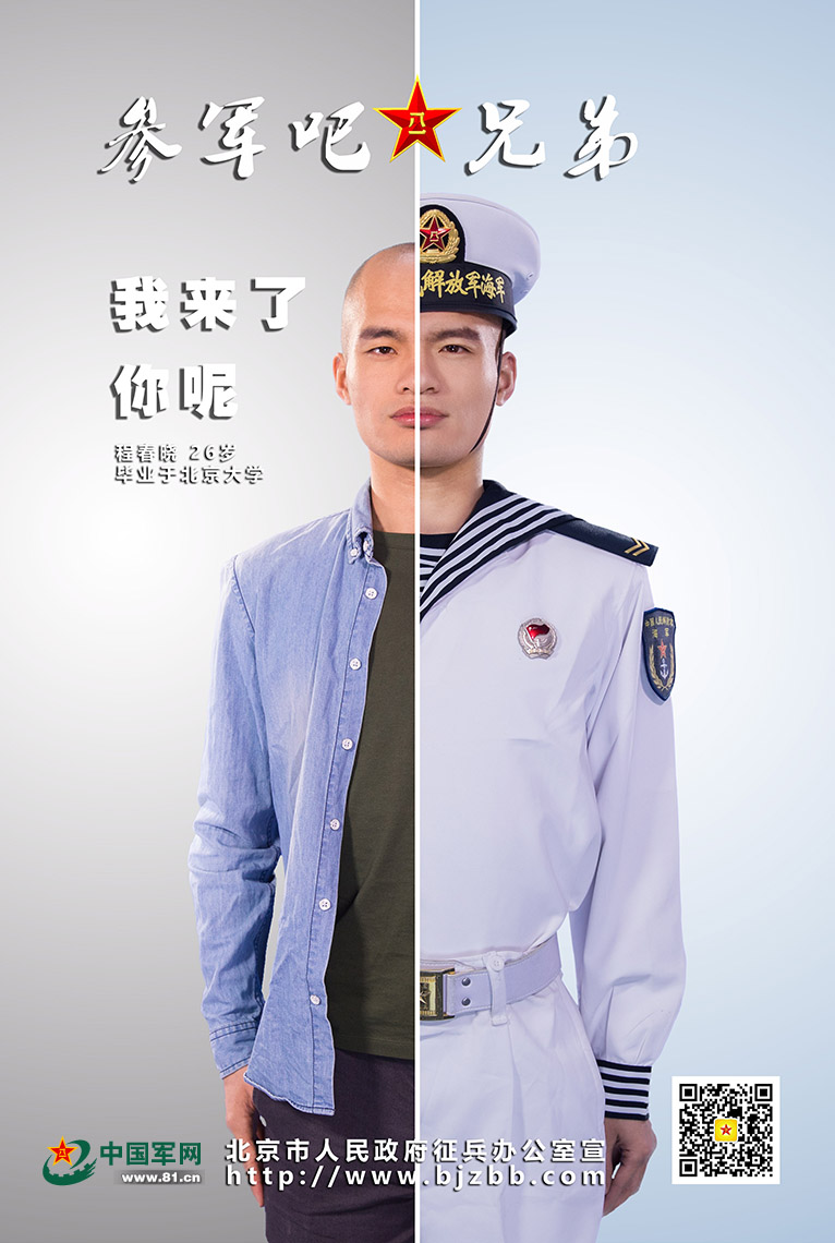 北京市人民政府征兵办公室发布征兵海报:参军吧,兄弟!