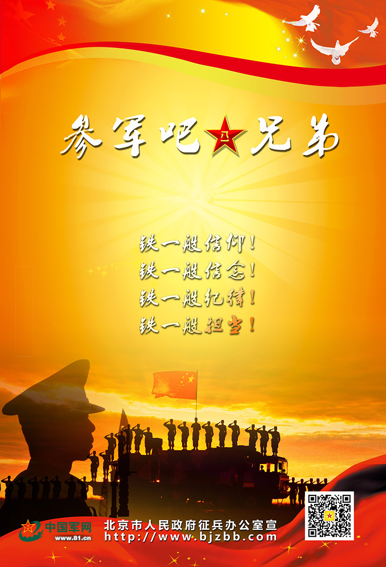 北京市人民政府征兵办公室发布征兵海报:参军吧,兄弟!