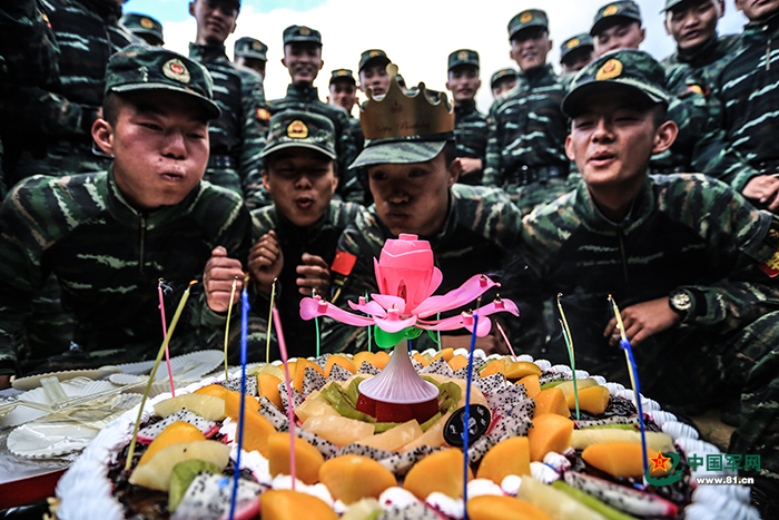 这是历年来总队首次在3000米以上地区组织的“魔鬼周”极限训练。高原缺氧,气候恶劣,训练异常艰苦,该分队领队的副支队长刘二介绍说,训练期间刚好有4名官兵过生日,为鼓舞士气,分队决定利用训练间隙为他们办一次集体生日晚会。