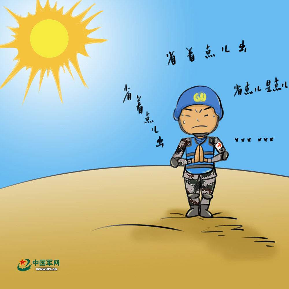 外出执行任务会偶遇沙尘暴和各种蚊虫的肆虐。在高温天气里,因缺水我们连汗都舍不得出,不断对自己身体默念:省着点儿出,省着点儿出,省点儿是点儿……