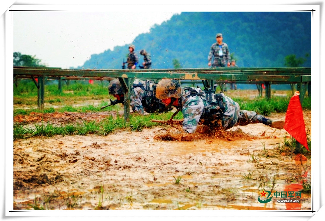 【镜头六】单兵战术:还记得吗?第一次训练正是天气迷蒙,细雨打湿了地面,浸湿了戎装,可我们依然豪气冲天。前进! 前进!前进!迷彩色似离弦的箭在泥泞中快速穿梭,像极了利刃出鞘时的锋芒,直刺最后的胜利方向。