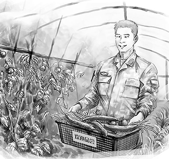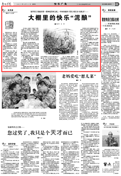 从那以后,一个印有“欢迎品尝”的菜篮子成了全连的福利。红彤彤的西红柿,脆生生的嫩黄瓜,在汗流浃背的操场,在尘土弥漫的工地,鲜爽的植物汁液滋润着大家干渴的喉咙,也传递着何文斌的快乐“泥酿”。