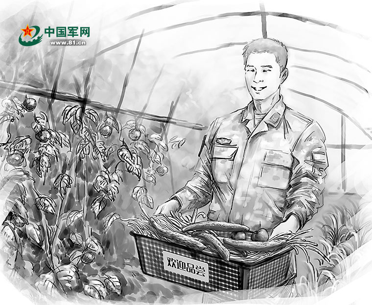 功夫不负有心人,大棚里渐渐生机盎然、瓜果飘香。大棚菜一上餐桌,立马成了“抢手货”,看着战友们大快朵颐,何文斌笑得眼睛都成了一条缝儿。他在日记里写道:“这种满足感,也不比当‘神枪手’差吧。”