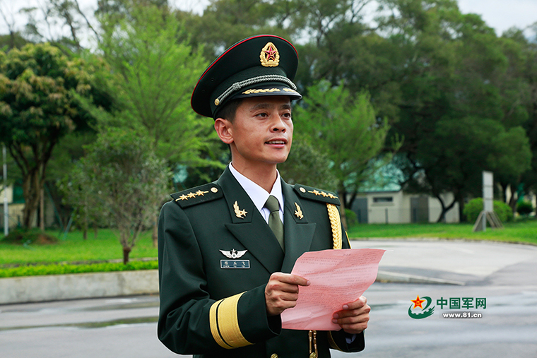 连长陈玉飞代表连队党支部表态,决心做到珍惜荣誉,心怀感恩。表示全连官兵将始终保持谦虚谨慎的态度,不懈怠、不松劲,固牢一流标准、一流作风、一流形象,努力推动连队各项工作更上一层楼;正视荣誉,固强补弱。全连官兵将发挥“主人翁”的意识,认真对照 “四有”建连育人,做到平时看得出,关键时刻顶得上,重大关头过得硬,努力打造全军一流的特战尖兵;维护荣誉,稳步前行。在今后的工作中将大力弘扬“铁心向党、铁拳攻坚、铁纪如山”的连队精神,把战斗力标准牢固立起来,始终成为听党指挥、能打胜仗、作风优良的驻港精兵。