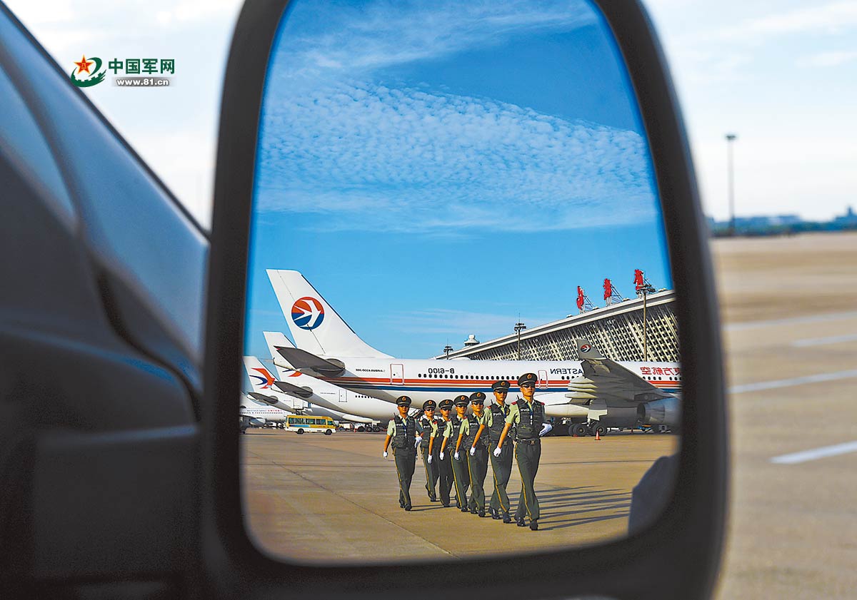 武警官兵在浦东国际机场执勤。