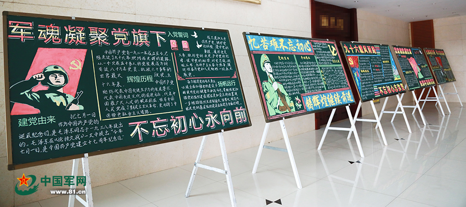 此次比武,旨在检验基本能力素质,是为巩固部队思想文化阵地提供人才保障的具体举措。竞赛以“纪念建党96周年”为主题,要求在4个小时之内,3人一组完成一块板报的设计与制作。