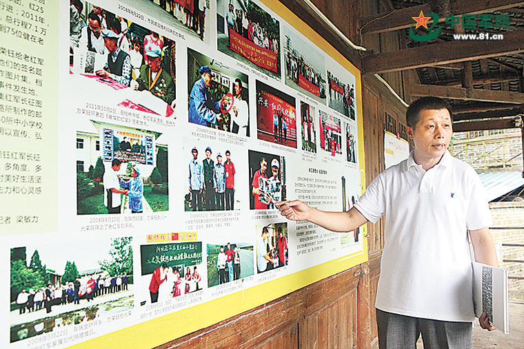 在广西桂林市郊区的一座小院里,有一个红军长征纪念馆。今年59岁的方荣钰曾是一位个体户,也是一名长期从事公益事业的志愿者,这座纪念馆就是由他创办。从2006年至2010年,方荣钰4次踏上长征路,行程近8万公里,拜访了75位老红军,历时300多天,拍摄了600余个红军长征纪念碑,用千余张照片记录下老红军的容颜,铭记了他们感人至深的峥嵘岁月。2013年,方荣钰自费筹建的红军长征纪念馆建成,为的是把老红军的事迹讲给大家听,把长征精神传承下去。请看《中国国防报》的报道: