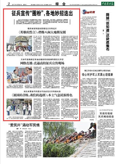 征兵宣传是征兵工作的重要组成部分。当下,正是征兵宣传的关键时节,各地结合地域特色,纷纷借助新媒体平台,创新征兵宣传方式,推出各自妙招。今日出版的《中国国防报》刊发的3篇报道就颇有代表性。