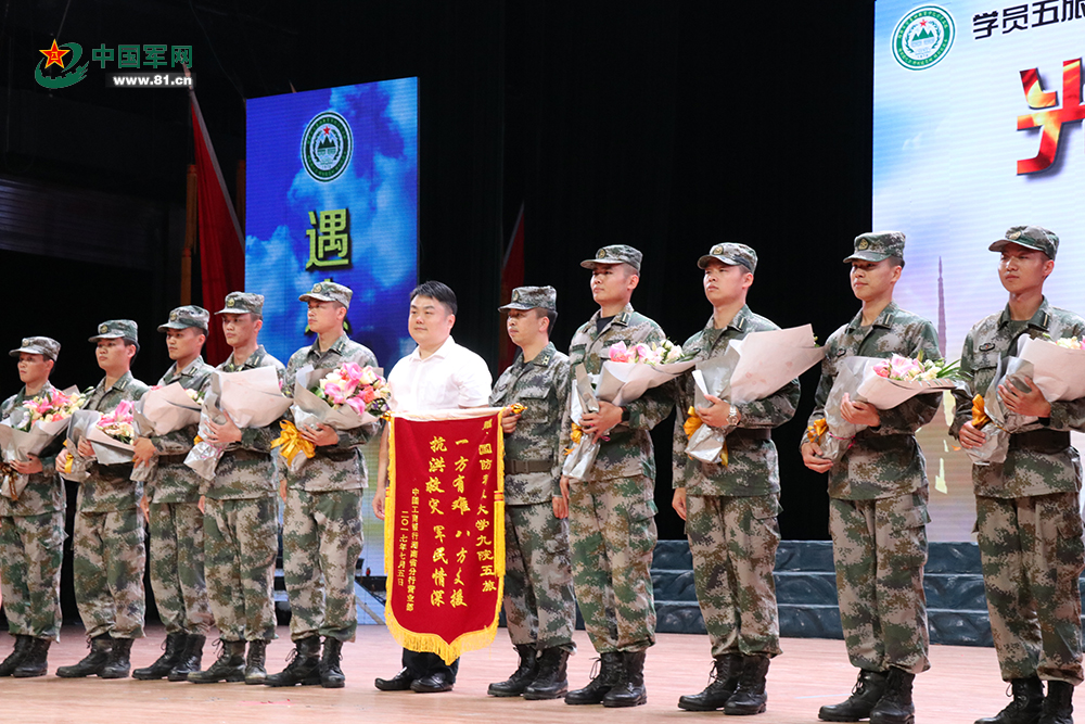作为学员旅长期共建单位,中国工商银行湖南分行营业部与我旅建立了深厚友谊,听到我旅大四学员紧急奔赴桃江抗洪抢险,他们非常感动,今天他们乘着这艘满载敬意和祝福的友谊之船,专程到现场慰问抗洪勇士,欢送毕业学员踏上新征程。