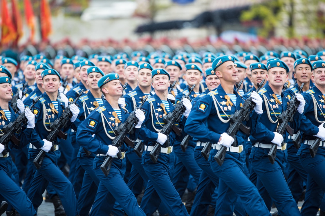 普京讲话后,来自俄罗斯陆军、海军、空军、空降兵、联邦安全局等约1万名官兵分成27个徒步方队通过红场,紧随其后的是以二战著名坦克T-34引领的近114台现代化军事装备。不过因天气原因,原定的飞行表演并没有进行。