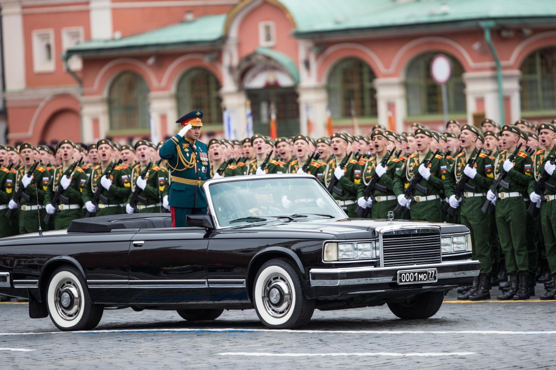 5月9日,在俄罗斯首都莫斯科,俄罗斯国防部长绍伊古在检阅军队。