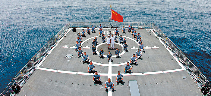 话音刚落,大洋之上掌声四起、经久未停,大家不仅为新人的喜结连理鼓掌,更为人民海军走向深蓝、走向世界感到骄傲和自豪。