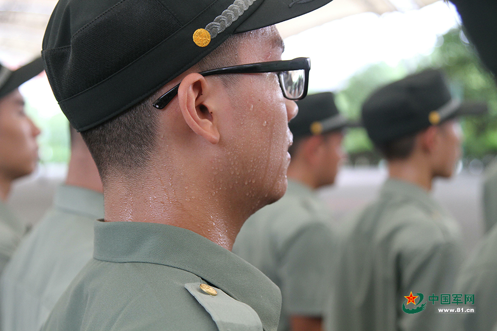 汗水浸透了衣襟,模糊了脸庞,只为树起军人的好样子。