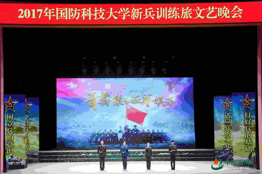 9月18日,国防科技大学新兵训练旅隆重举办主题为“青春集合在军旗下”的新兵文艺晚会。在这个特殊的日子里,2017级新学员将自己的青春热血和雄心壮志融入到嘹亮的军歌里,融入到曼妙的舞姿里,融入到“首战用我,用我必胜的”誓言里。