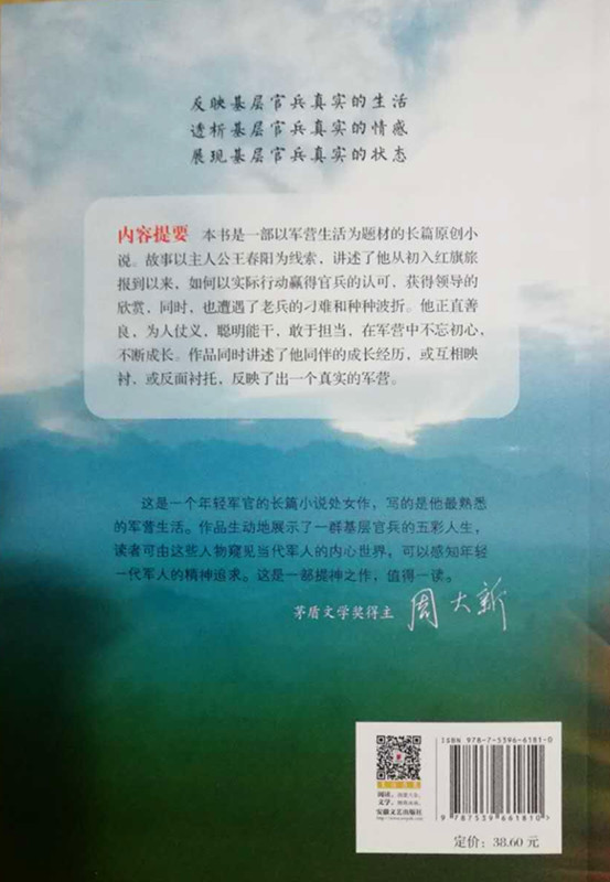 王春阳身后还有一群可爱的兵。老士官魏磊为人老成,既随大流有其自私的一面,也不甘落后有其积极上进的一面。尚思远没心没肺,经常说一些无厘头的话,干一些无厘头的事,但不失其善良率真。如果说王春阳是江耀武的影子,杨松则是王春阳的影子,他也是陪伴王春阳最长的人。大学生新兵杨铭和彝族战士白阿毛,是王春阳从新兵连一手带出来的,杨铭在抗震救灾一线提干,白阿毛后来比武夺冠提干,王春阳任营长时,他们也晋升为连长了。这群人组成的部队,有欢笑、有泪水,也有感动、有成长。