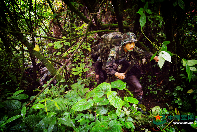 巡逻官兵边开路边前行。(马军 摄)