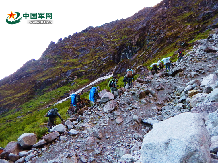 天还没有亮,一队官兵就在巡逻队队长普金承的带领下向边境线出发。峡谷里的天气总是无常,不期而至的大雨让原本就不好走的羊肠小道更加泥泞。战士们打着电筒、喘着粗气,手脚并用向前攀爬。弯腰,站直,再弯腰,再站直……每个人头上冒着的热气,混合着汗水与雨水顺着手中的钢枪滴在地上。