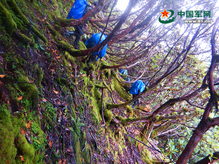 巡逻官兵翻越险山。(张华林 摄)
