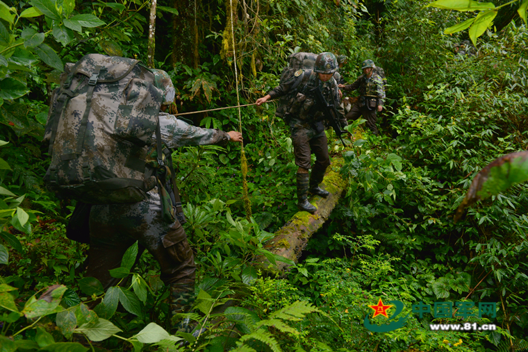 巡逻官兵过独木桥。(马军 摄)
