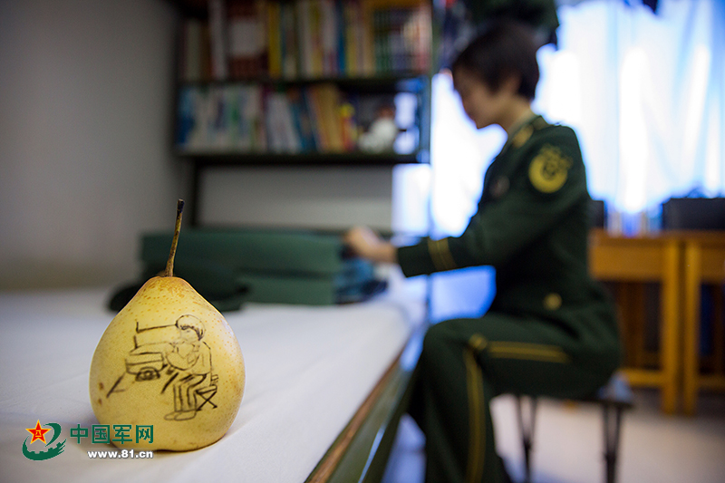 14:30,“果萌君”午休后,把床铺再整理了一遍,坐在床边捏被子。“果萌君”的被子棱角分明,不愧是内务标兵。