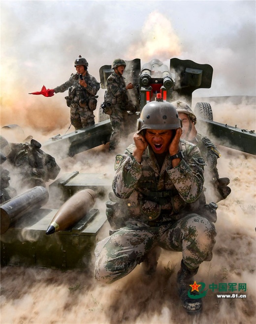 2017年9月24日,陆军第71集团军某炮兵旅加榴炮进行昼间实弹射击,摄影师拍下了战士在怒吼的火炮旁边操作的震撼场景。彭希 摄影