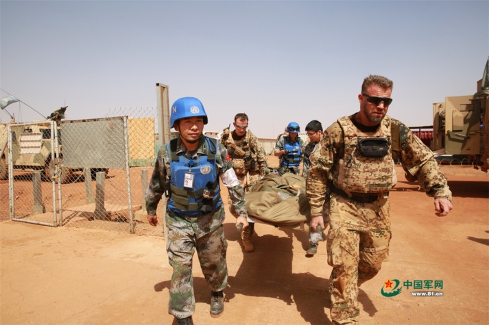 2017年4月20日 当地时间4月18日下午,中国第四批赴马里维和医疗队赴加奥机场,前接收治了3名马里政府军伤员。经过医护人员的全力救治,所有伤员伤情稳定,无生命危险。赵子权 摄影